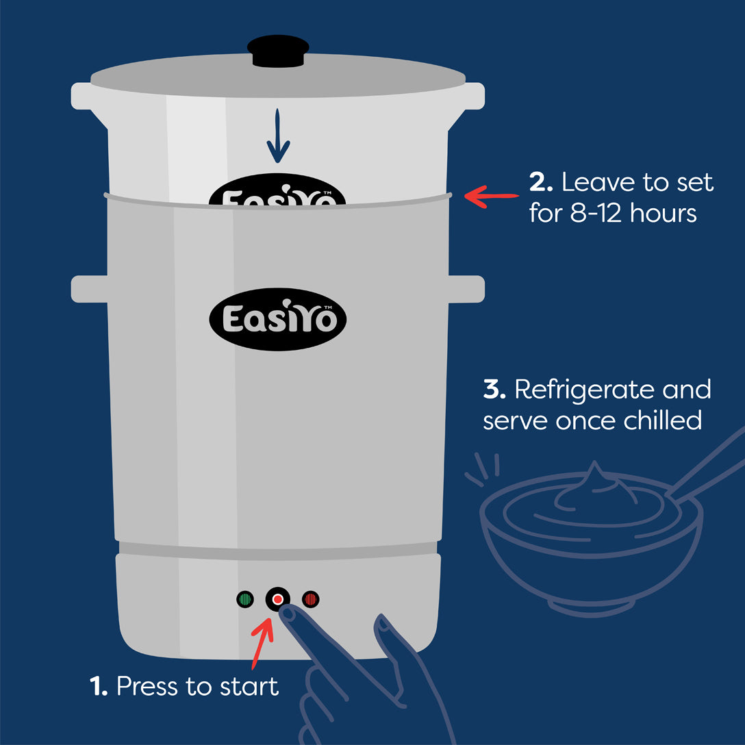Our electric yogurt maker takes the difficulty out of making fresh yogurt on site. Easy to use and designed to work perfectly with EasiYo Yogurt Bases